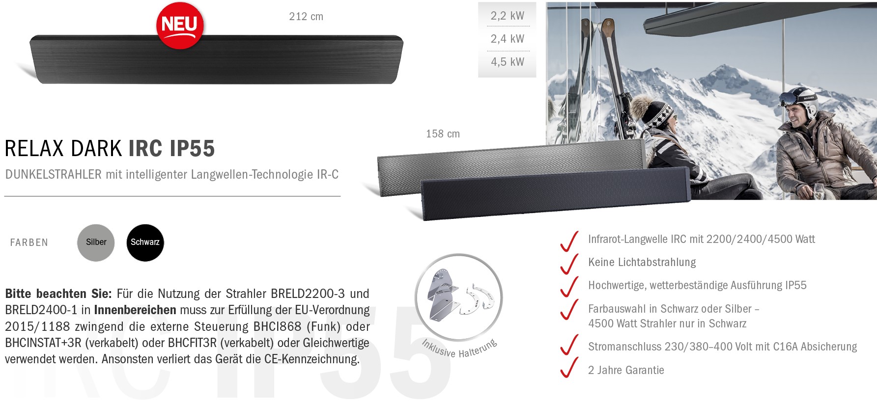 Die neuen Dunkelstrahler mit Infrarot-Langwelle für Innenräume und windgeschützte Außenbereiche!