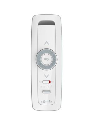 Funkhandsender mit Scrollrad für die manuelle Vor-Ort-Steuerung mehrerer io-Antriebe oder io-Funkempfänger per Funk.