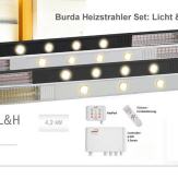 Mit dem Infrarotstrahler, Burda L&H URLH1765 haben Sie sofort Beleuchtung und Wärme für Terrasse, Balkon, Markise oder Wintergarten in Einem. Privat, aber auch für Restaurant-Terrasse der ideale Wand- oder Deckenheizstrahler.