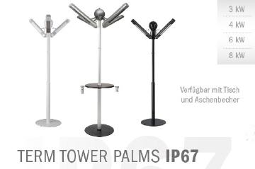 Der TERM TOWER PALMS ist mit zwei bis maximal vier wasserdichten Infrarotheizstrahlern der Serie TERM 2000 IP67 ausgestattet.