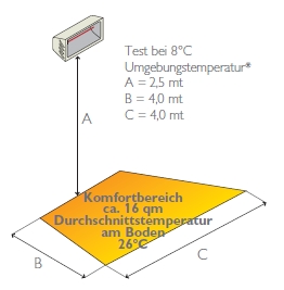 - Flächenleistung bei 2.000 Watt bis ca. 16 qm (je nach Umgebungstemperatur)