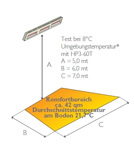 Großer Vorteil der Infrarotstrahler ist, dass einerseits nur beheizt wird wenn effektiv Wärme benötigt wird und andererseits 100% der Wärme sofort nach dem Einschalten des Gerätes spürbar ist.