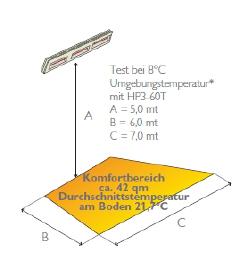 Für größere Flächen und höhere Montageanordnungen wurder der HP3 entwickelt. Auf etwa 3 - 4 Meter Höhe sollte dieser Infrarotstrahler montiert werden. Punktuell oder großflächig einsetzbar erspart er Ihnen enorme Wärmeverluste.
