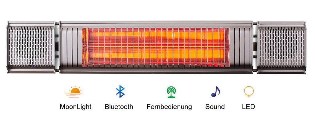 Um alle Bedürfnisse abzudecken, und das macht den HeizMeister Heat,Feat & Beat zu diesem einmaligem Infrarotstrahler, kommt die Musik in bester Qualität über Ihrem Smart Phone gesteuert, ebenfalls aus dem Infrarot-Heizstrahler. Drei Funktionen in einem Gerät von 74,5 Länge. Das passt.