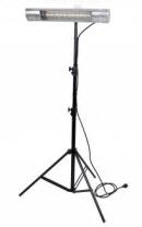 Der Heizmeister Professional 2000 IP65 ist ein hochwertiger Infrarot Heizstrahler mit modernster Infrarot Technik (IR A) und leistungsstarker HeLen Goldröhre - für alle Außenanwendungen geeignet, optimierter Wirkungsgrad, erstklassiger Verarbeitung. Hier in Kombination mit einem Dreibeinstativ in der Farbe schwarz.
