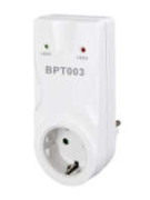 Steckdosen Empfänger BPT003 für Funk Raumthermostat BPT710. Das BPT003 schaltet aufgrund der vom Sender übermittelten Daten den angeschlossenen Verbraucher aus und ein.