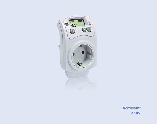 Einfaches Thermostat welches vor dem Verbraucher (Heizelement) in die Steckdose gesteckt wird.